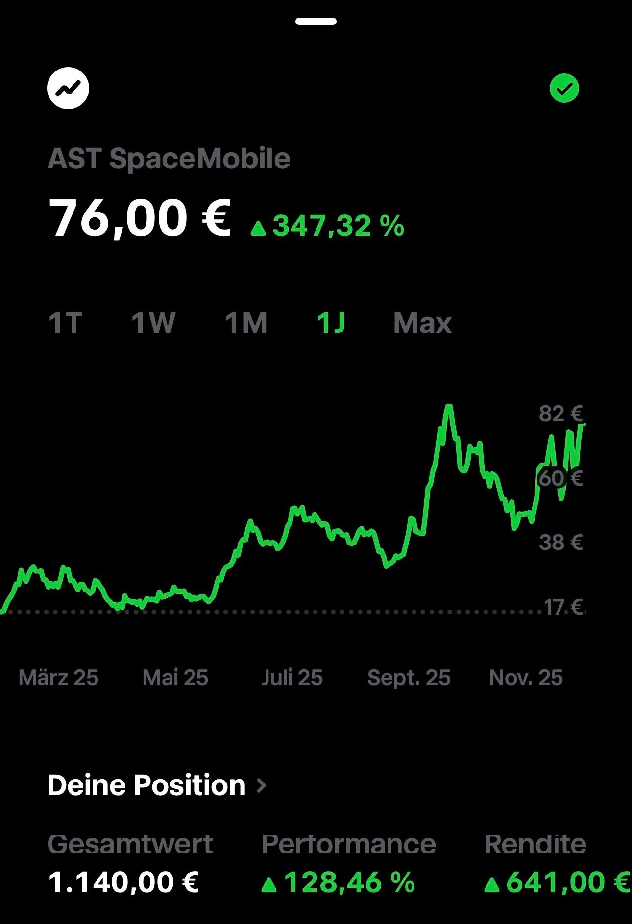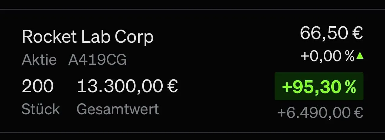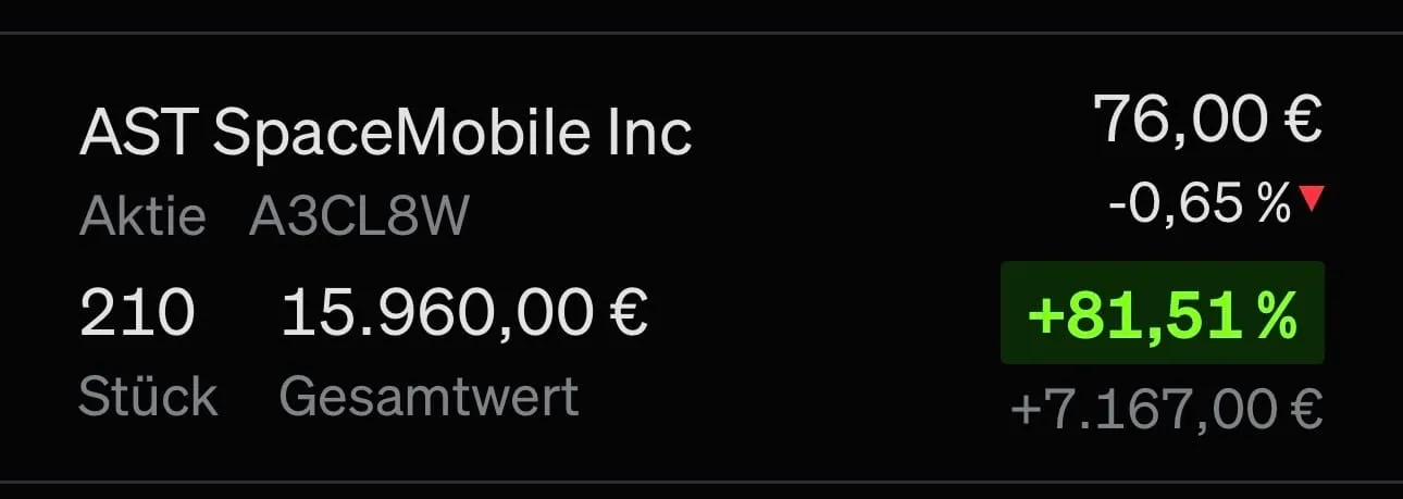 Ihr bekommt natürlich sofort mitgeteilt, wenn wir selber auch einsteigen – inklusive Positionsgröße. So konnten Syan und ich allein zusammen mit Ondas Holdings, ASTS und RKLB über 50.000 € Profit in weniger als 2 Monaten realisieren.