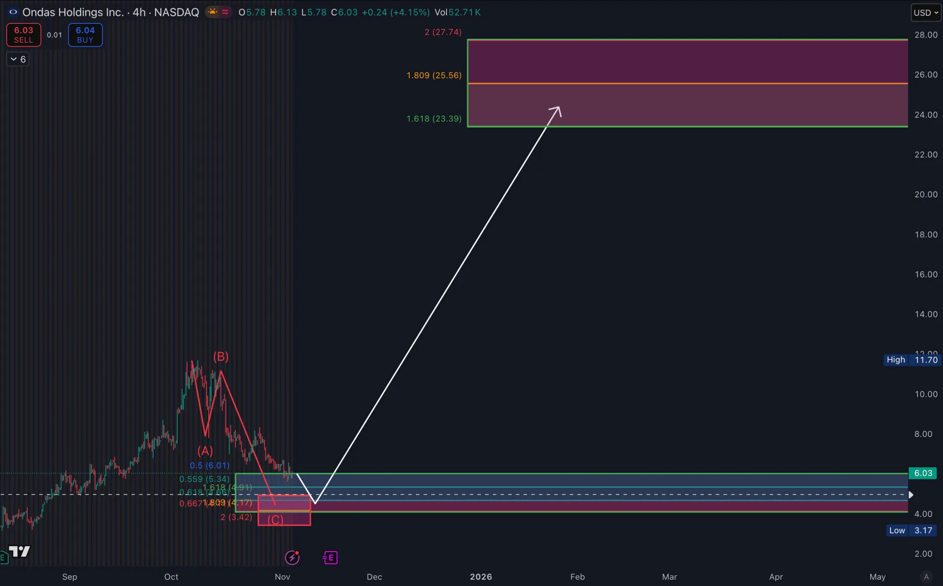Die Kursziele sind aktuell noch nicht aktiv, und ihr solltet wissen, dass Ondas aufgrund seiner Größe schwer zu charten ist.